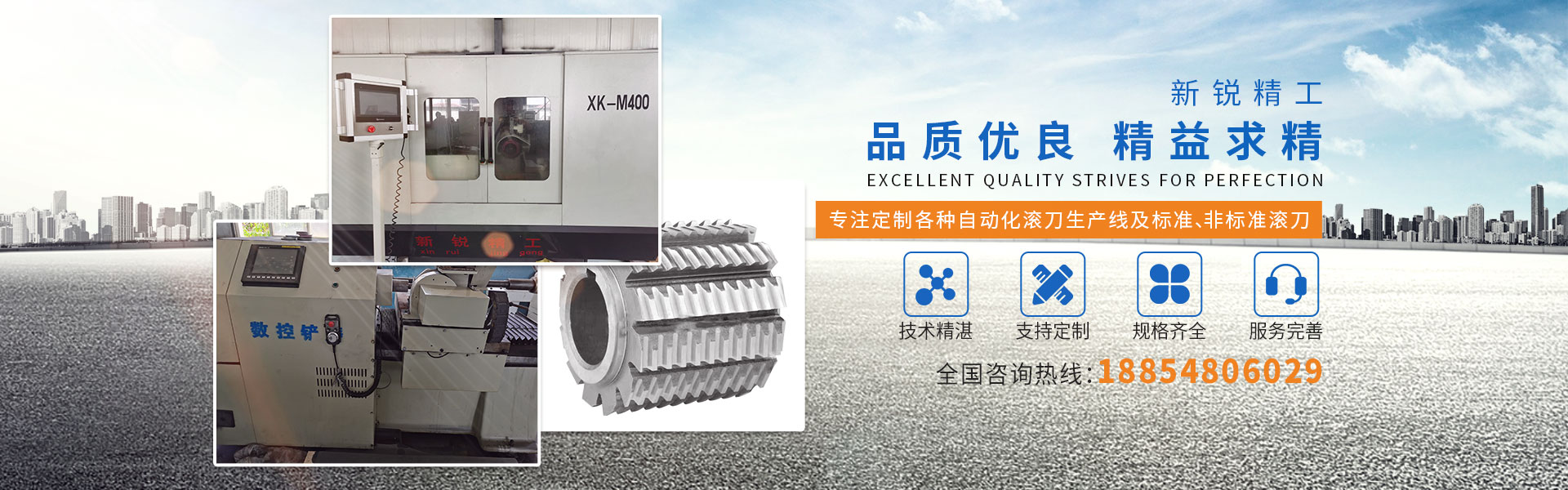 公司常年致力于滾刀制作,專注定制各種標準,非標準滾刀,以及自動化滾刀生產線。公司擁有自主研發滾刀專用銑床,高速鏟齒,高精度全自動在線修整鏟磨床等設備。綜合多年滾刀制作經驗,研發整套數字化滾刀生產流程,完全解決了生產效率,精度,以及對員工技術的高要求。本公司生產設備為了滿足不用客戶需求,可定制經濟實用版,高性能版,除核心控制之外其他部件均可依照客戶要求品牌定制。軟件為本公司自主研發,根據市場需求,本公司會在一時間更新版本。公司刀具產品涵蓋了剃前滾刀,磨前滾刀,渦輪滾刀,齒條銑刀,收割機刀片銑刀等各種產品,模數從M0.1-M20。